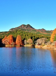 麓は錦秋、山頂は冬枯れの甲子山