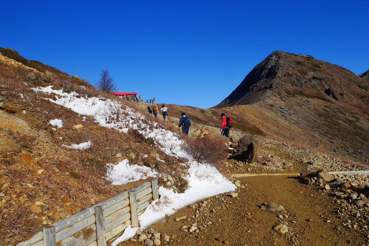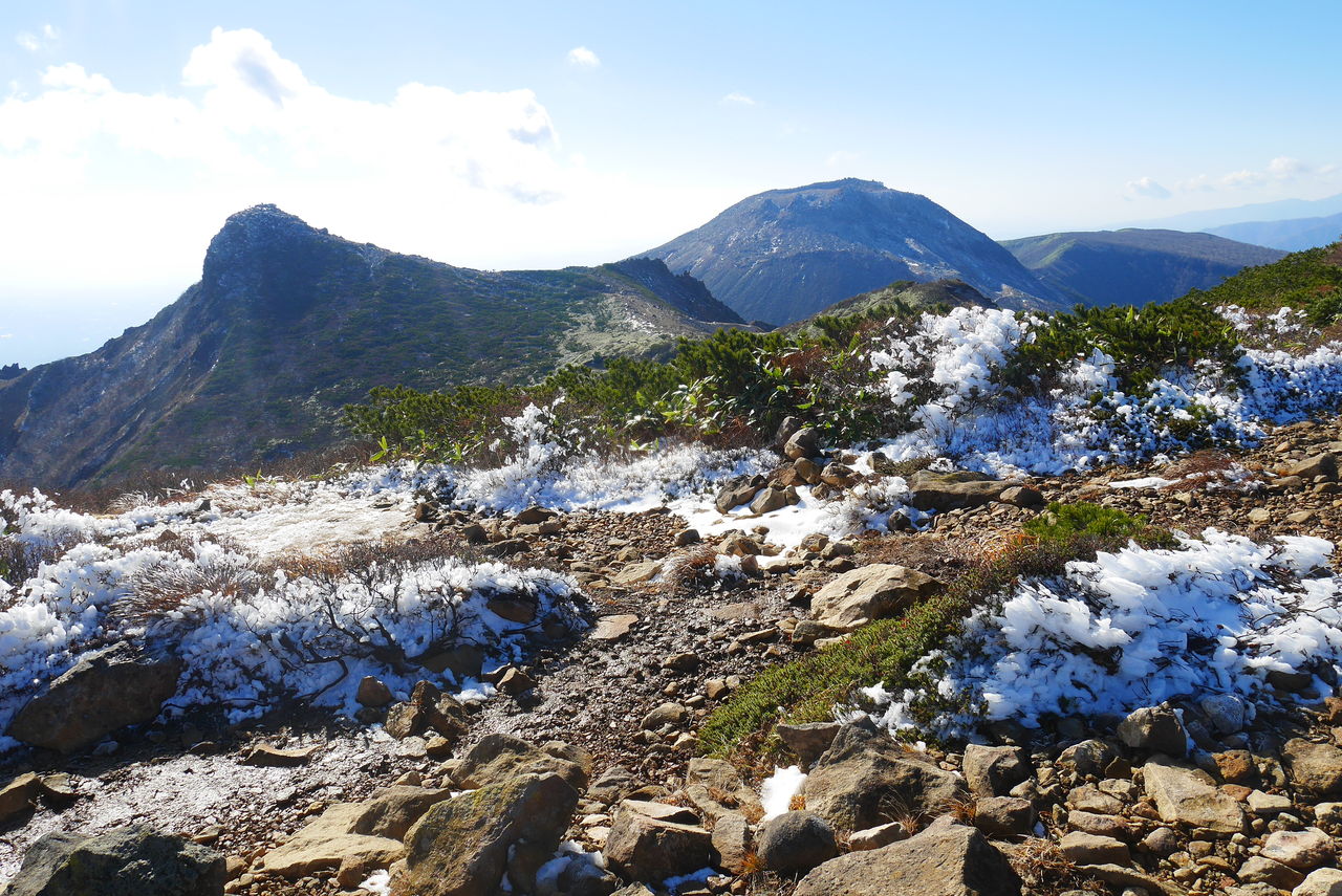 ただ、積雪があると剣ヶ峰のトラバース、朝日岳への岩場の急登は難しくなります。