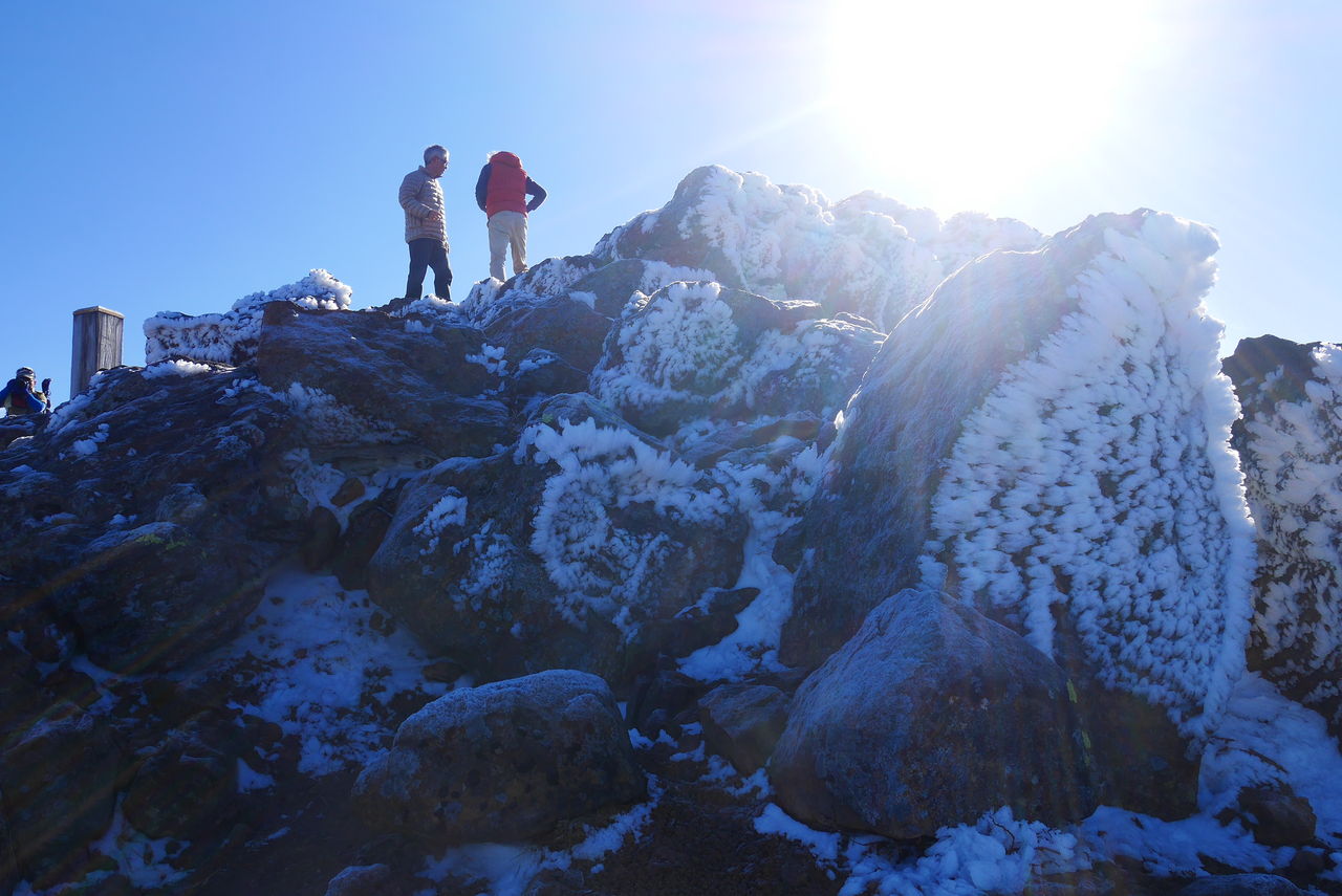 霧氷と絶景を堪能した後はスリッピーな岩場をへっぴり腰で下山します(笑)