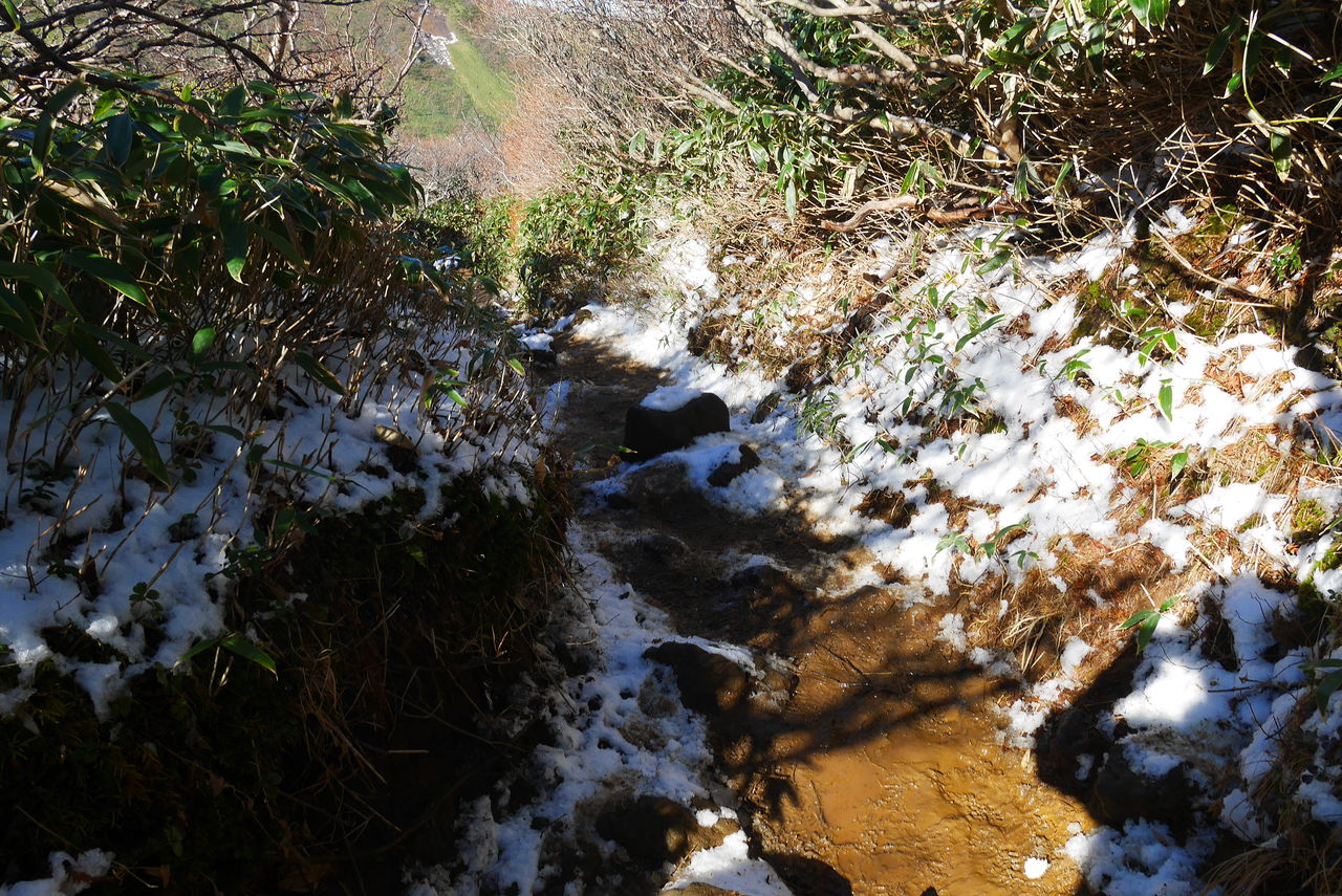 清水平から先の登山道は霜や雪が融けて泥道天国。