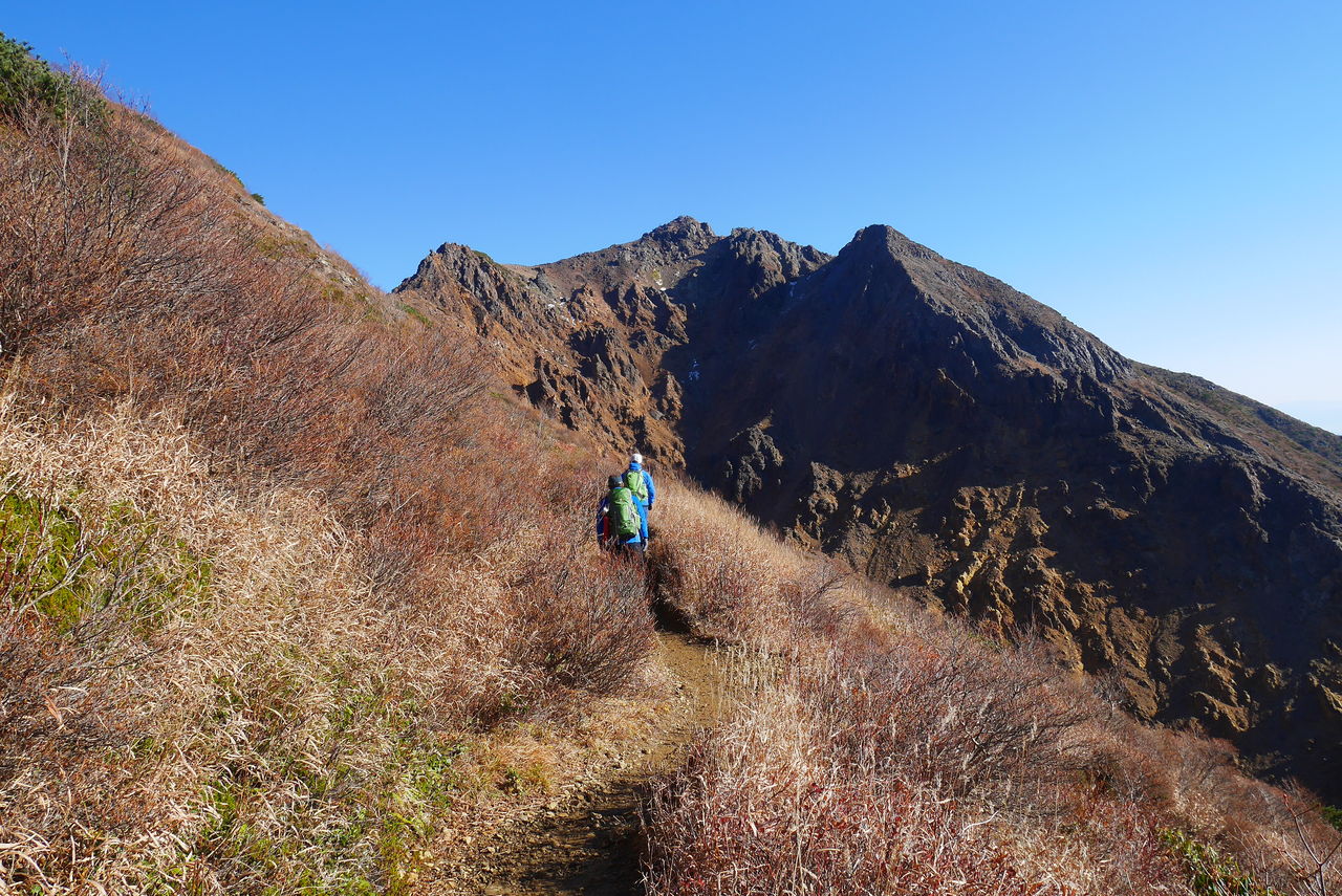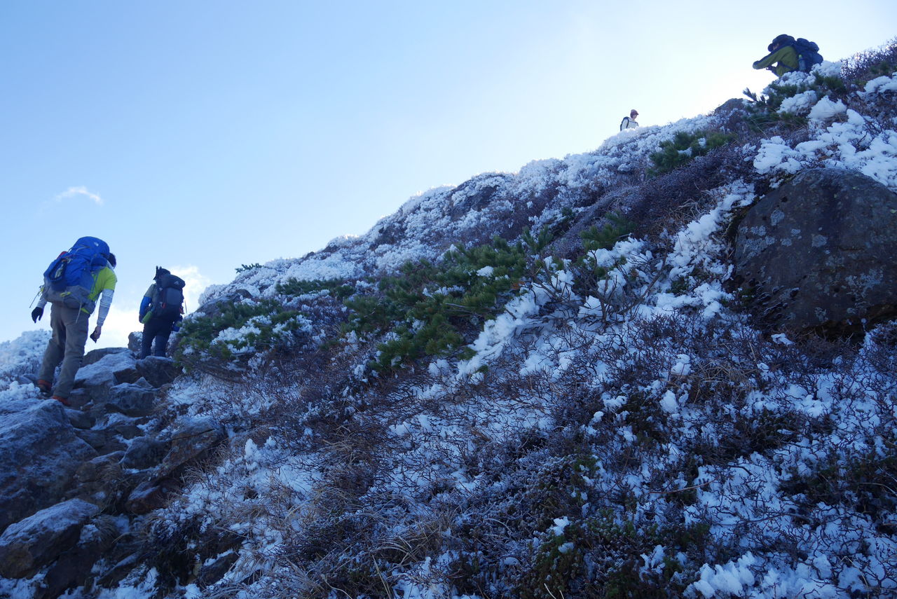 霜が融けて滑りやすくなった岩場の登りはいつにも増して慎重になります。