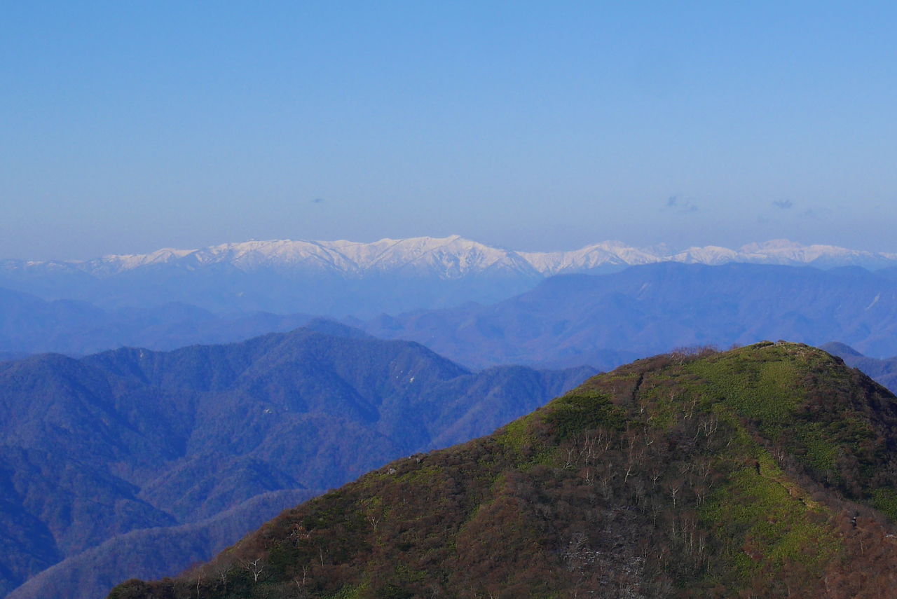 遠くの白い山を見るのも冬山の楽しみですね。