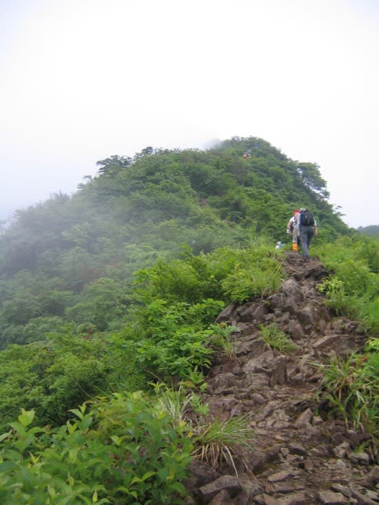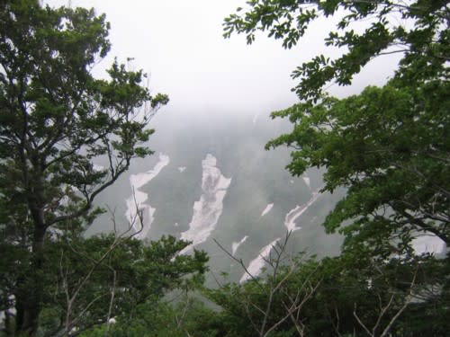 ガスの切れ間から、浅草岳山頂が顔を覗かせます。
