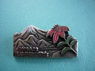 6時45分 記念品のバッジとお神酒を頂き登山開始。