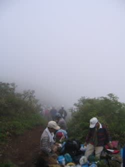 蒸し風呂のような樹林帯の中を大勢の参加者が一列に進んで行きます。