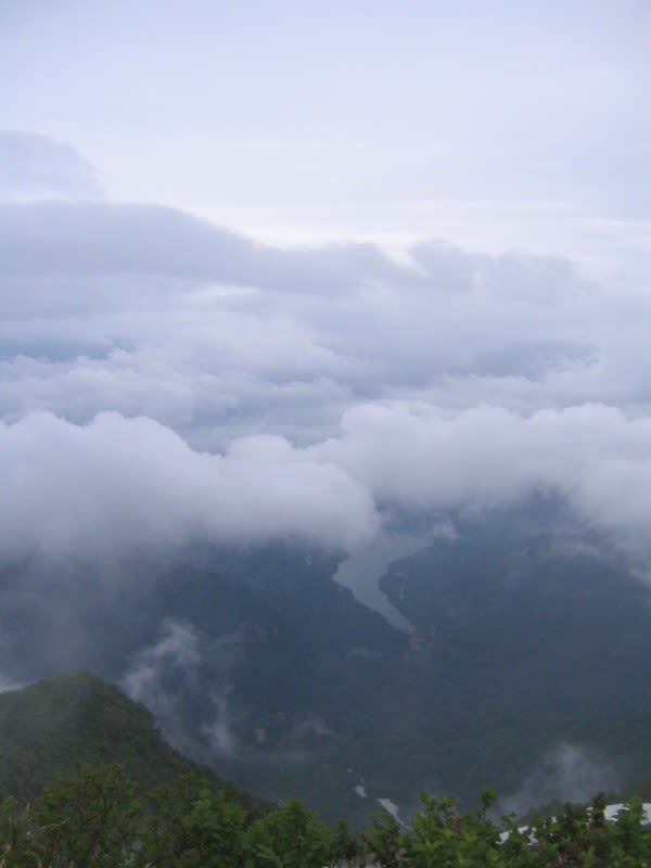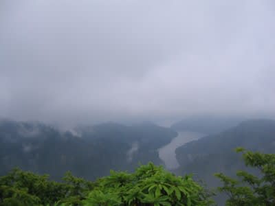 分厚い雨雲の下、田子倉湖の眺めが最高です。
