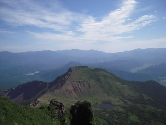 櫛ヶ峰とその先には荒々しい火口壁も望める。