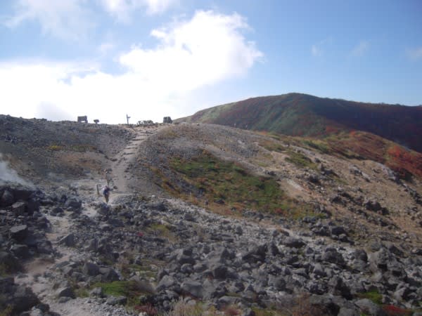 峰の茶屋跡を通過し、噴煙上がる茶臼の巻道を通って牛ヶ首を目指した。