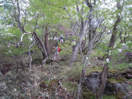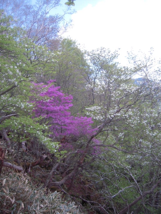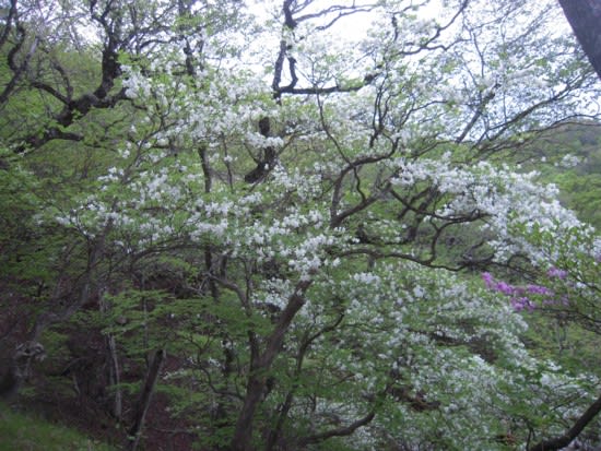 剣ヶ峰を過ぎて大入道までの尾根はシロヤシオ、トウゴクミツバツツジが満開でした。