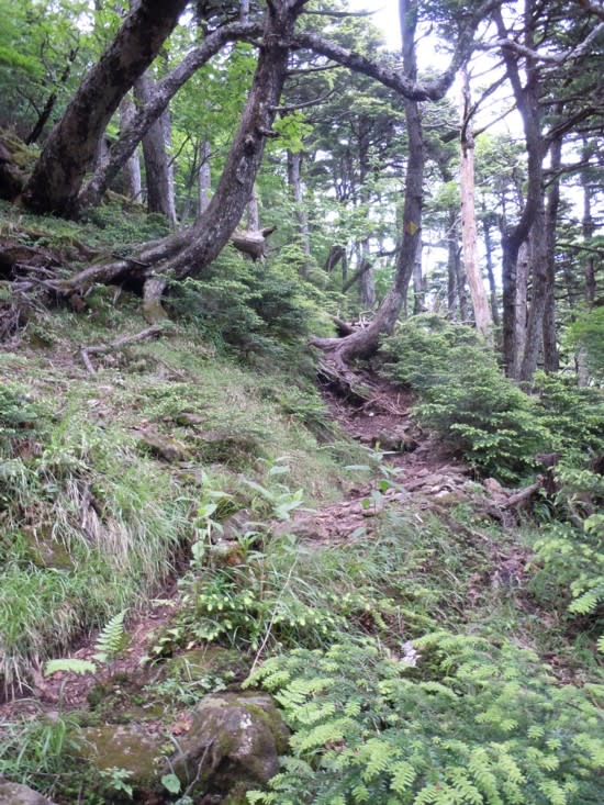 下山は緩やかな巻き道を通りキスゲ平への登山道に合流。