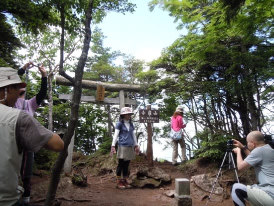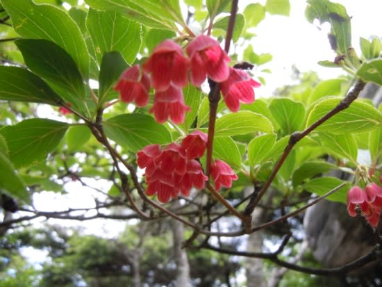 山頂のベニサラサドウダンに癒されて小休止。