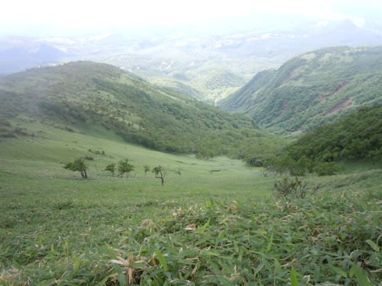 梅雨の晴れ間にしては素晴らしい青空の下、眺めの良い笹道を登って行きます。