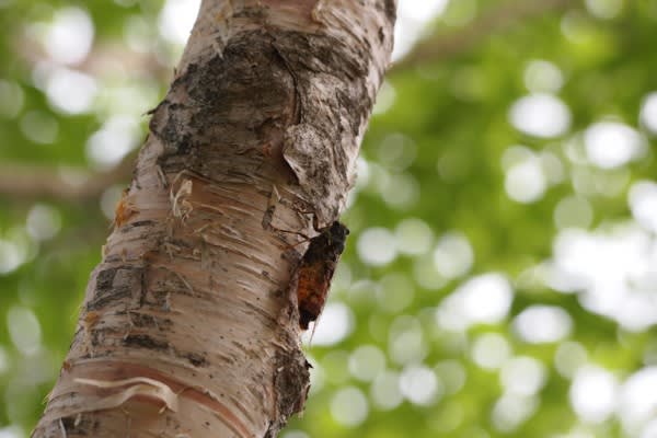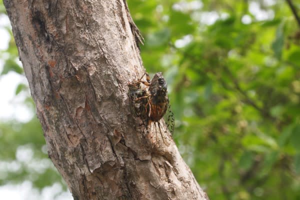 ふと樹上を見上げると、精一杯短い命を謳歌してるエゾハルゼミの姿があった。