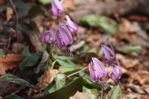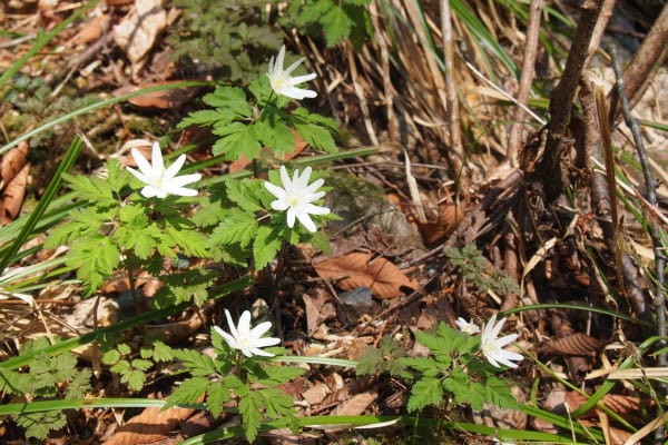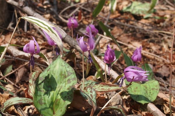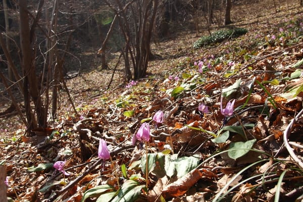 急いでいるのだけど、沢沿いに咲くキクザキイチゲやカタクリを見ると思わず立ち止まってしまう。