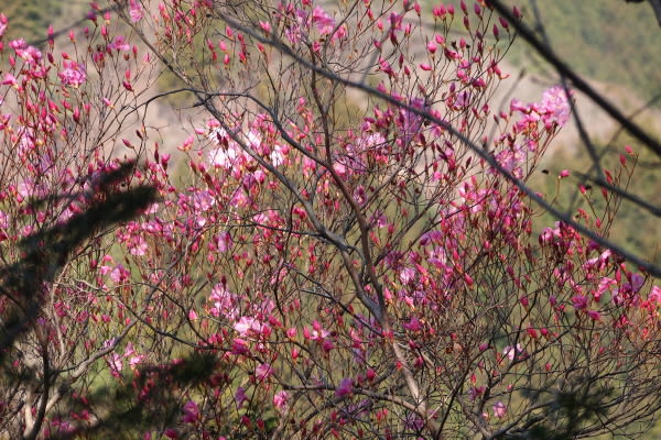 こいつは登山道から最も近くに咲いていた尾根上のアカヤシオ。