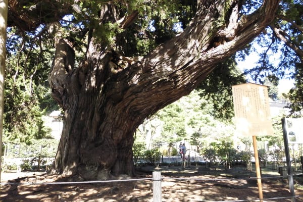 ヒノキ科の針葉樹で樹齢730年、幹周り6.5m、樹高13mの巨樹。