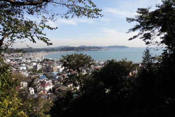 見晴台から由比ヶ浜、逗子マリーナなどの眺望。