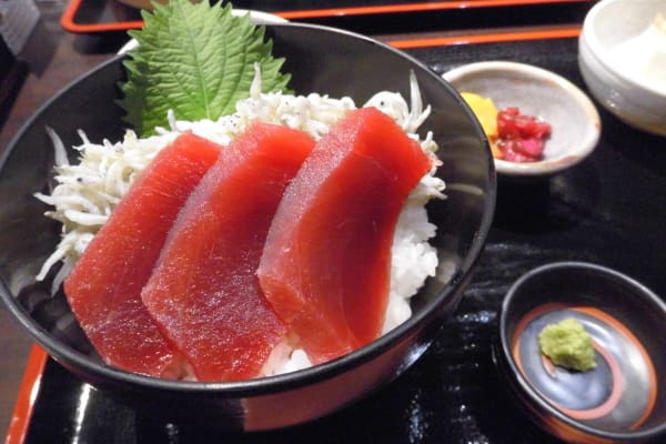 ランチは鮪とシラスの二色丼、それに三崎の鮪丼。