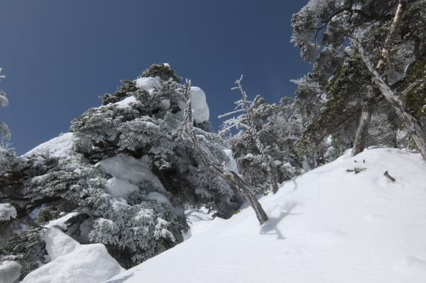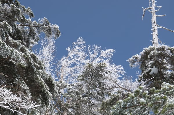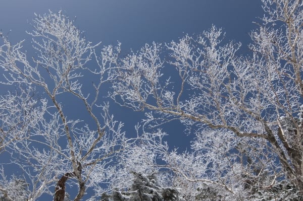 シラビソの森は樹氷のトンネル。