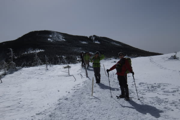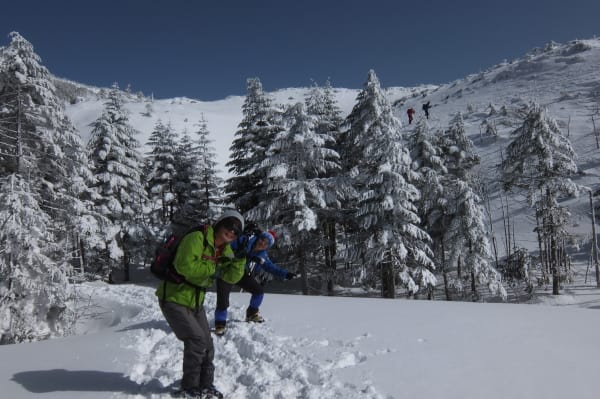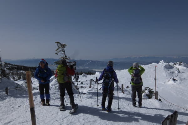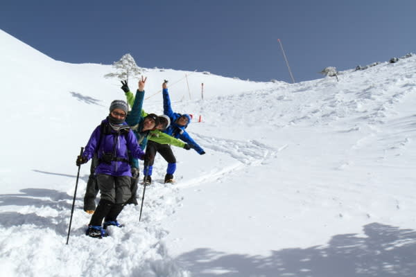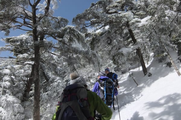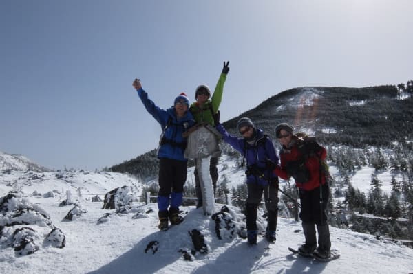 今回の冬山装備の足元はLaylaさんがスノーシュー、他4名はアイゼンを装着。