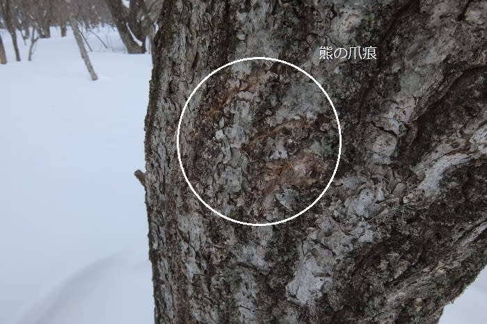 ハイ、幹には熊の爪痕がくっきりと・・・(^^;)