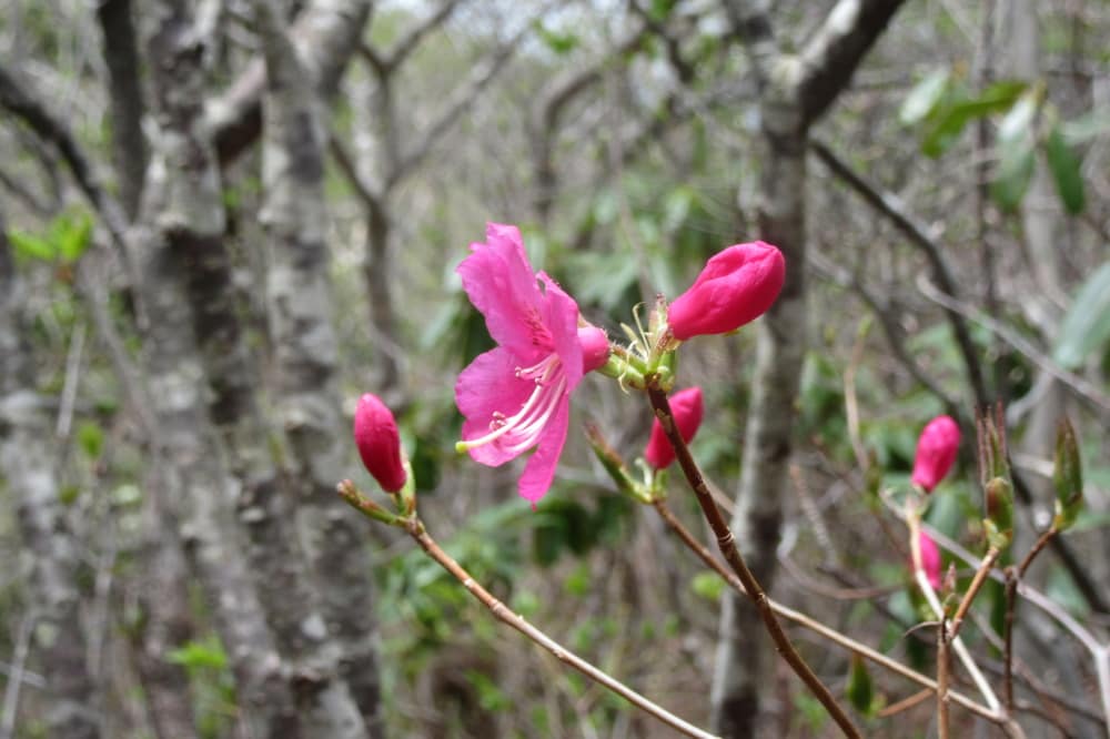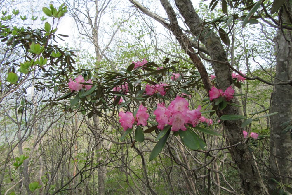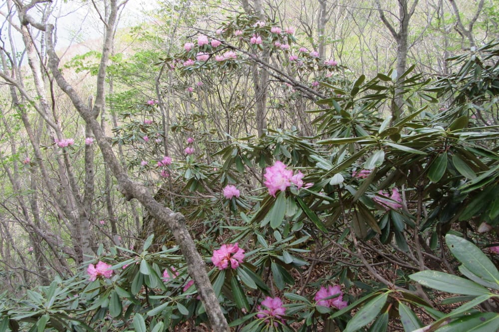 沼原駐車場までの復路ではムラサキヤシオが咲き始め。