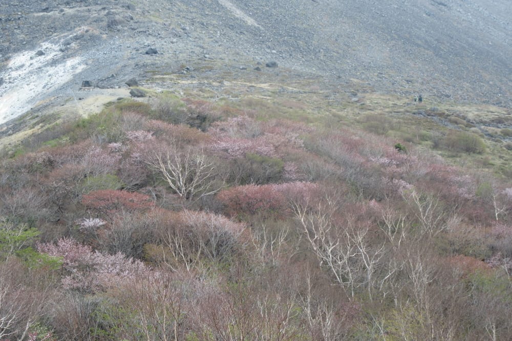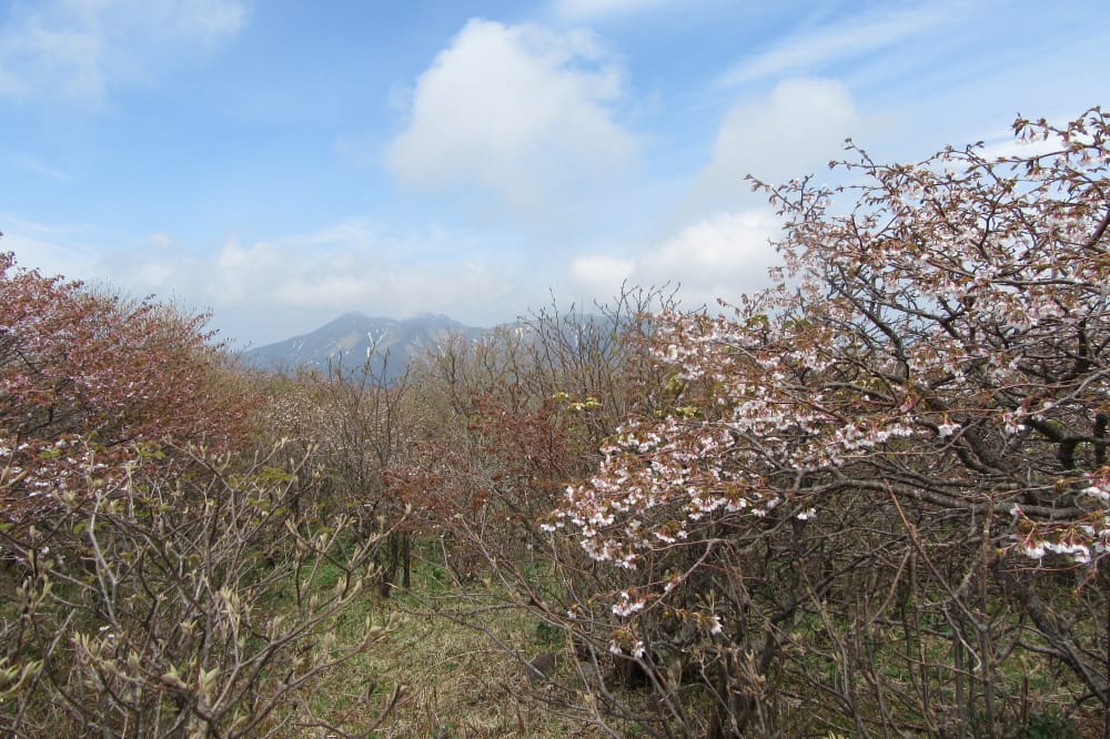 那須岳・牛ヶ首から日ノ出平一帯のミネザクラが例年よりも10日早く見頃を迎えた。