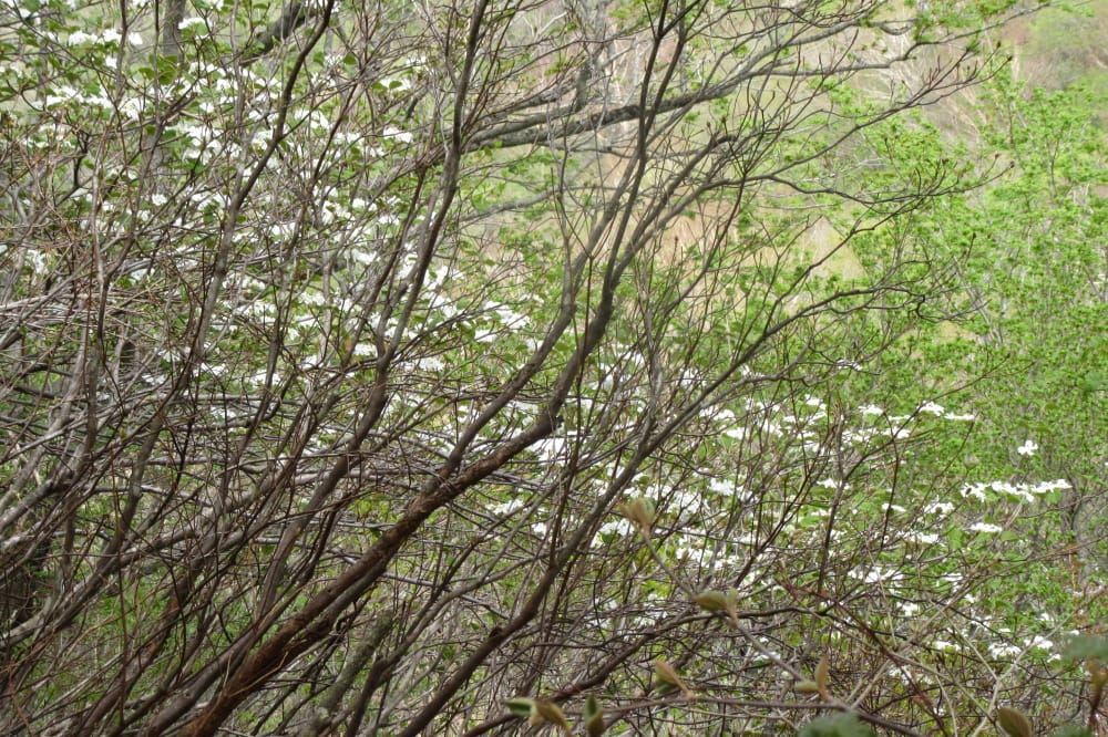 ミネザクラとムシカリの咲く斜面。