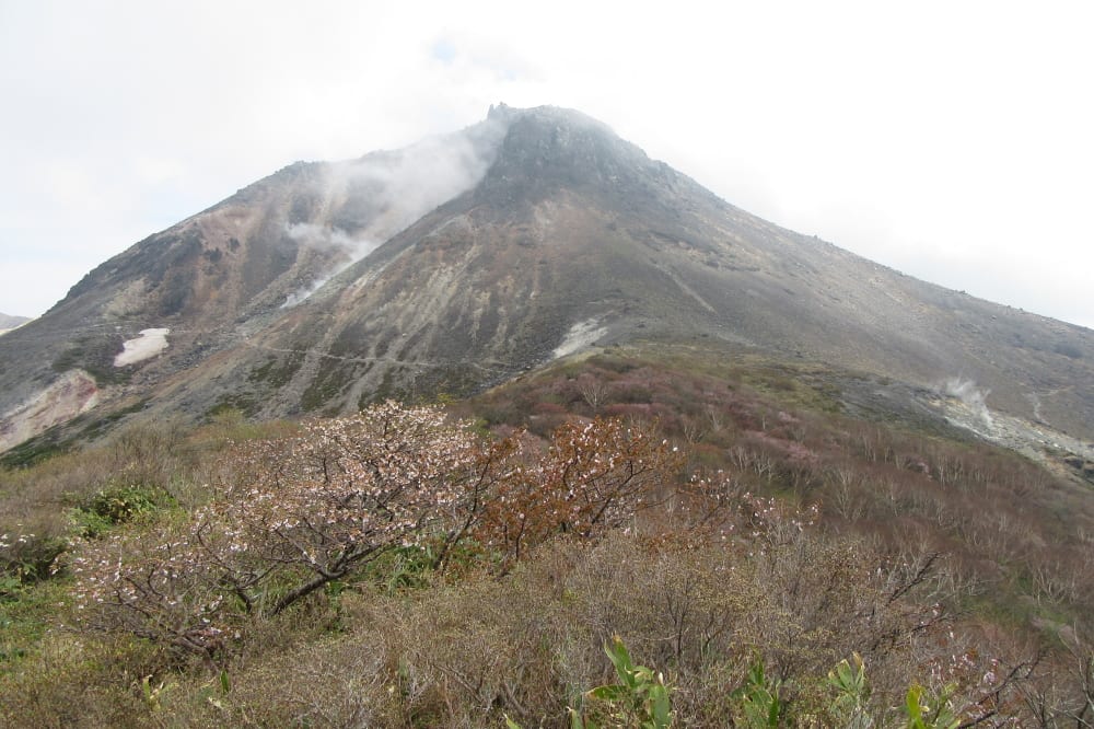 色の濃いミネザクラと茶臼岳。