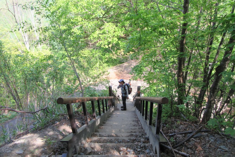 豊富な雪融け水が囂々と流れる沢を横目に暫しの林道歩き。