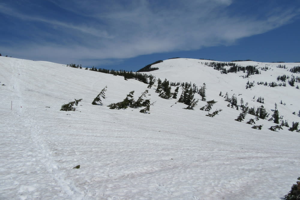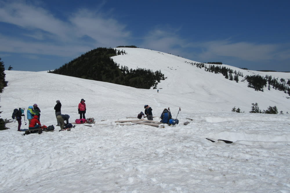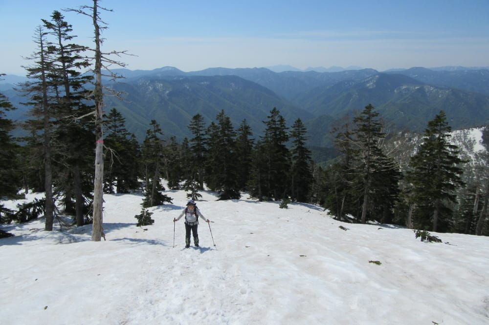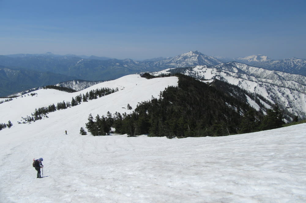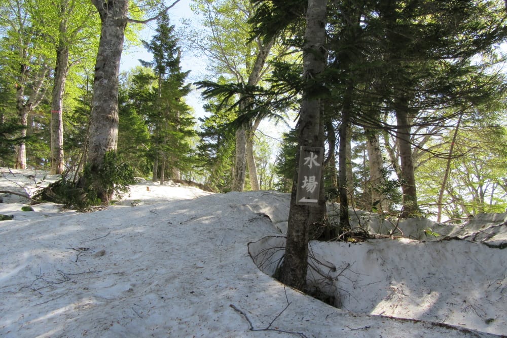 ヘリポート跡の手前辺りに一部残雪が有り、下山時には要注意なトラバース道となっていた。