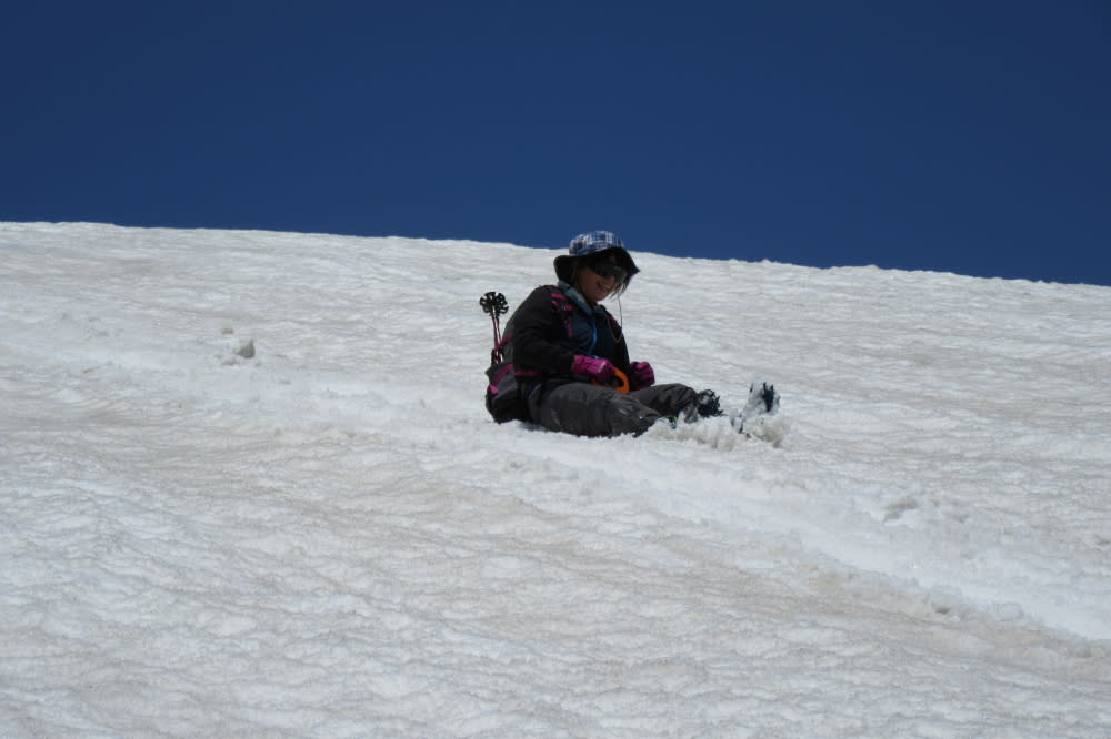 まるで雪の壁を登るような急斜面に悲鳴も上がるが、この絶景を見れば疲れなんて一気に吹き飛ぶというもの。