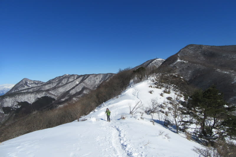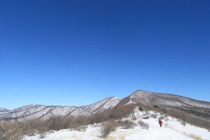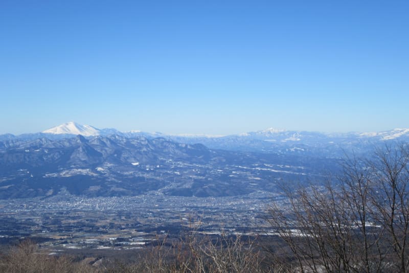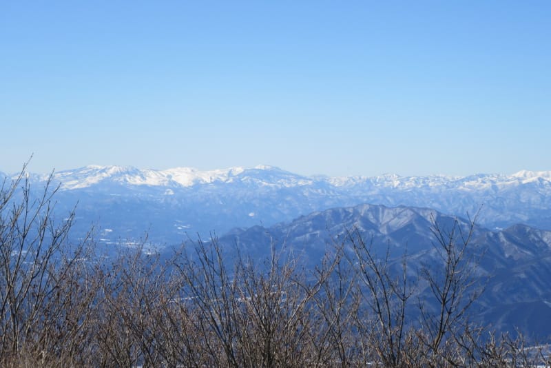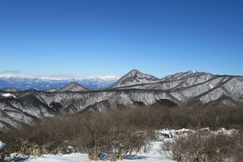 鈴ヶ岳の後方に見える武尊山も際立つ白さ。