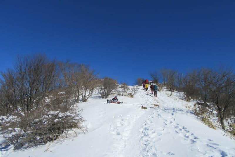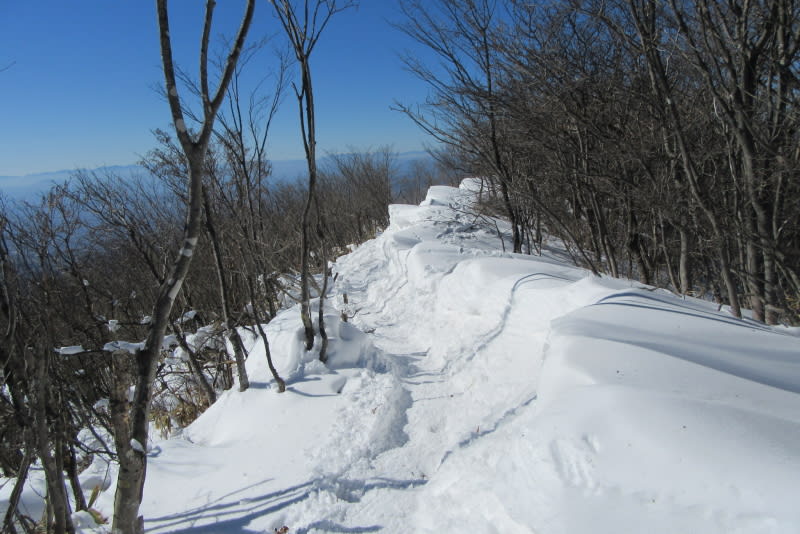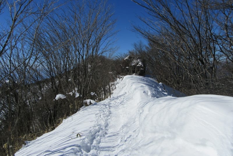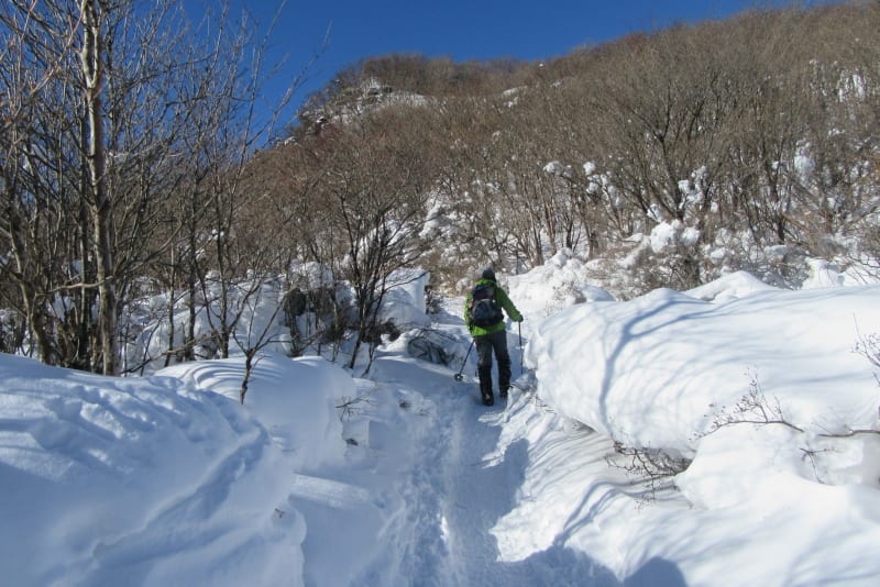 鍋割山の稜線を目指してもモコモコの雪道を行く。