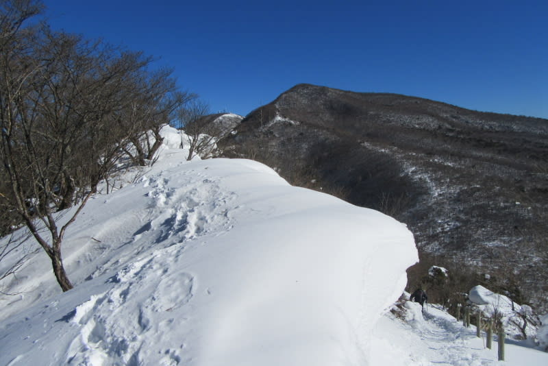 雪庇脇の登山道。