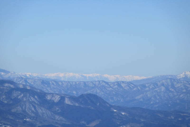 北アルプスの白い屏風をズームで。