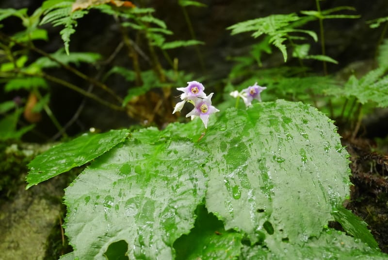 岩壁にはイワタバコの花がびっしりと咲いていました。