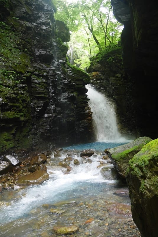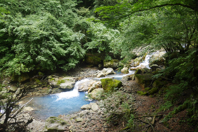 これぞスッカンブルー!素簾の滝付近にて。