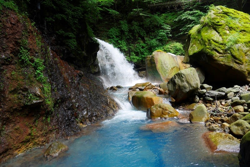 そして美しいスッカンブルーの滝壺。四季を通して何度訪れても素晴らしい所です。