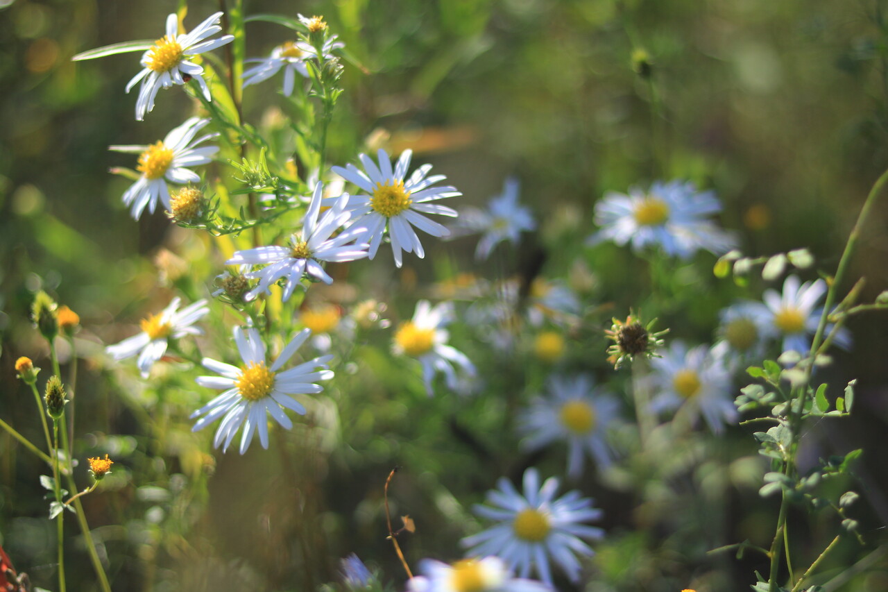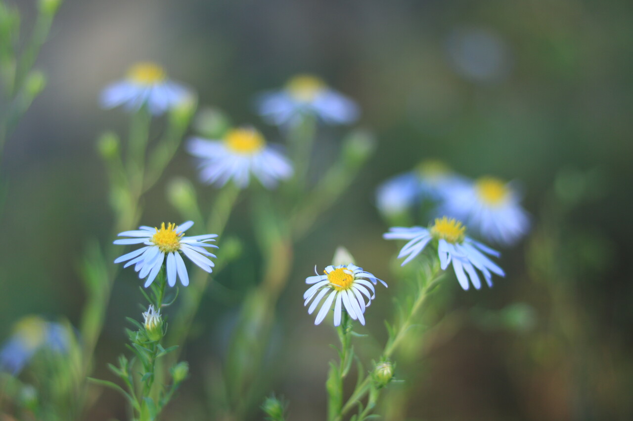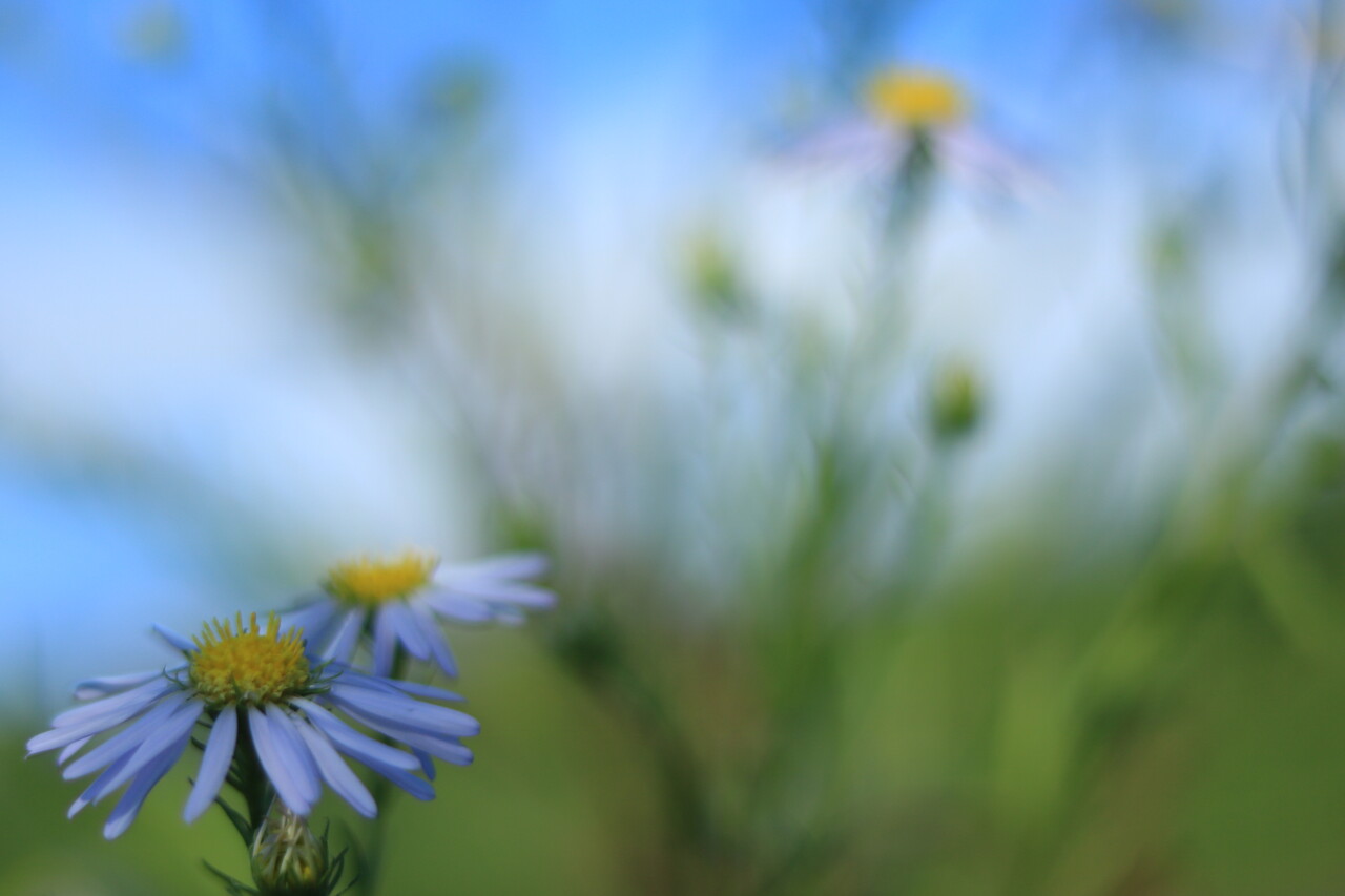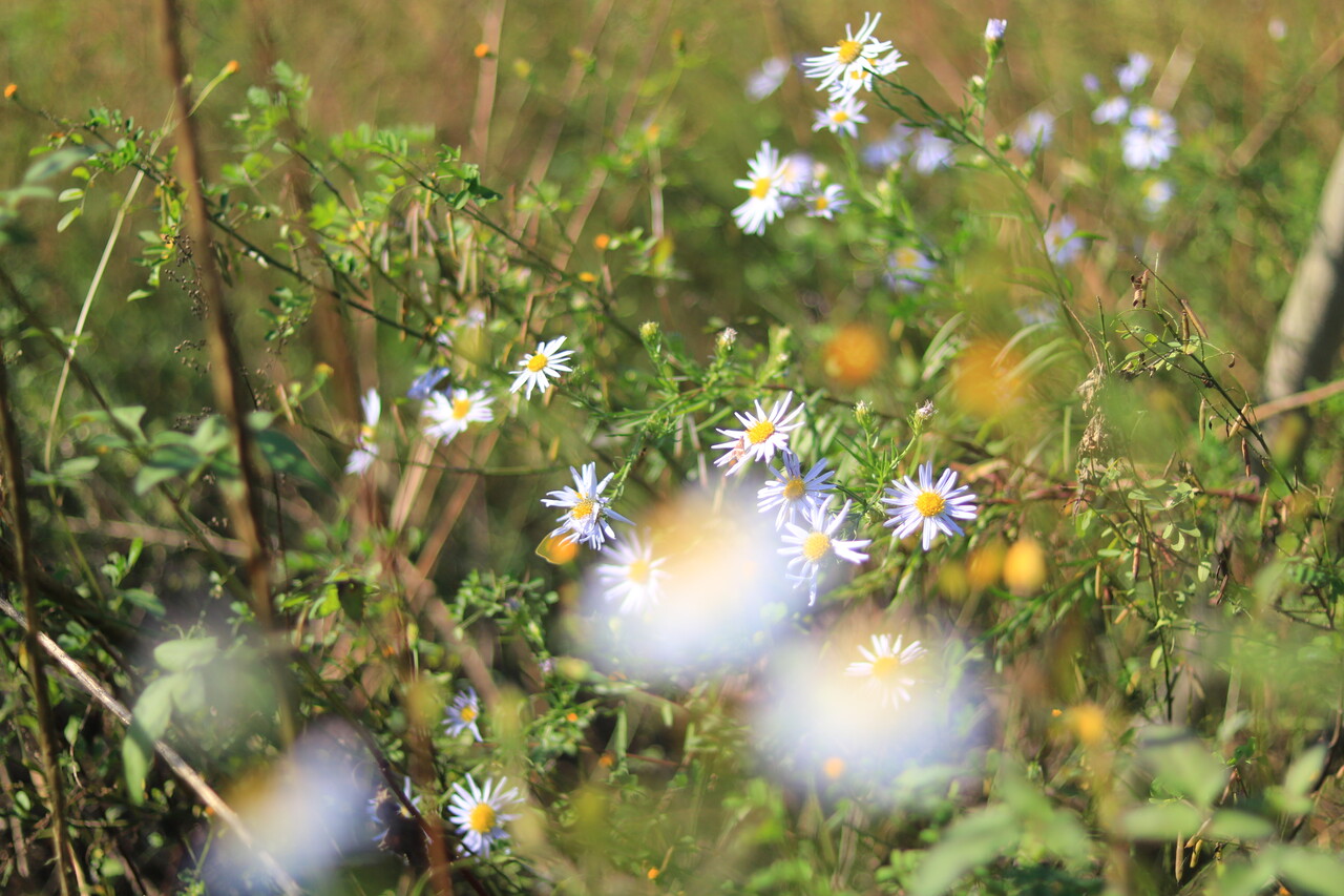 今回はカワラノギクを奇麗に撮りたくて単焦点レンズを携行。