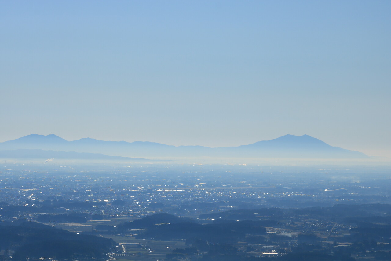 霞む筑波連山。