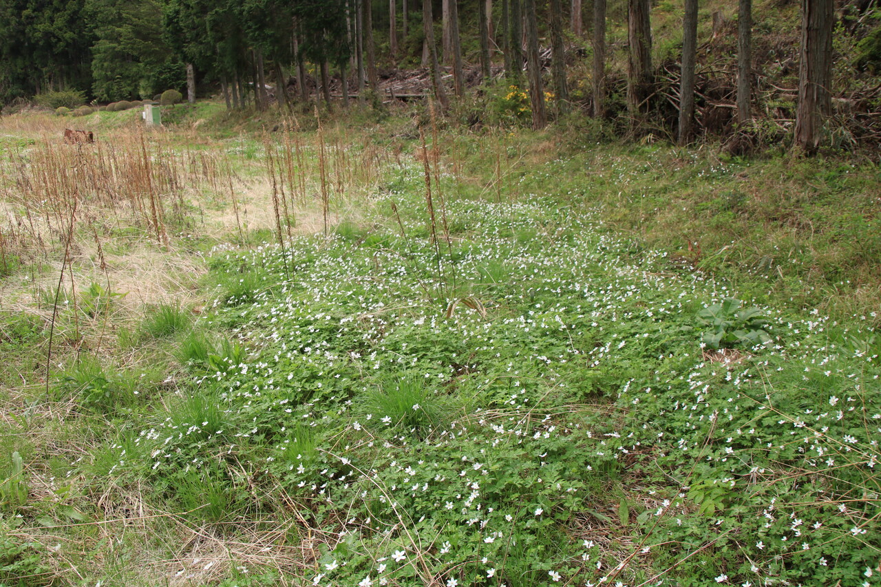 休耕田?野原?・・・に咲くニリンソウの群落。