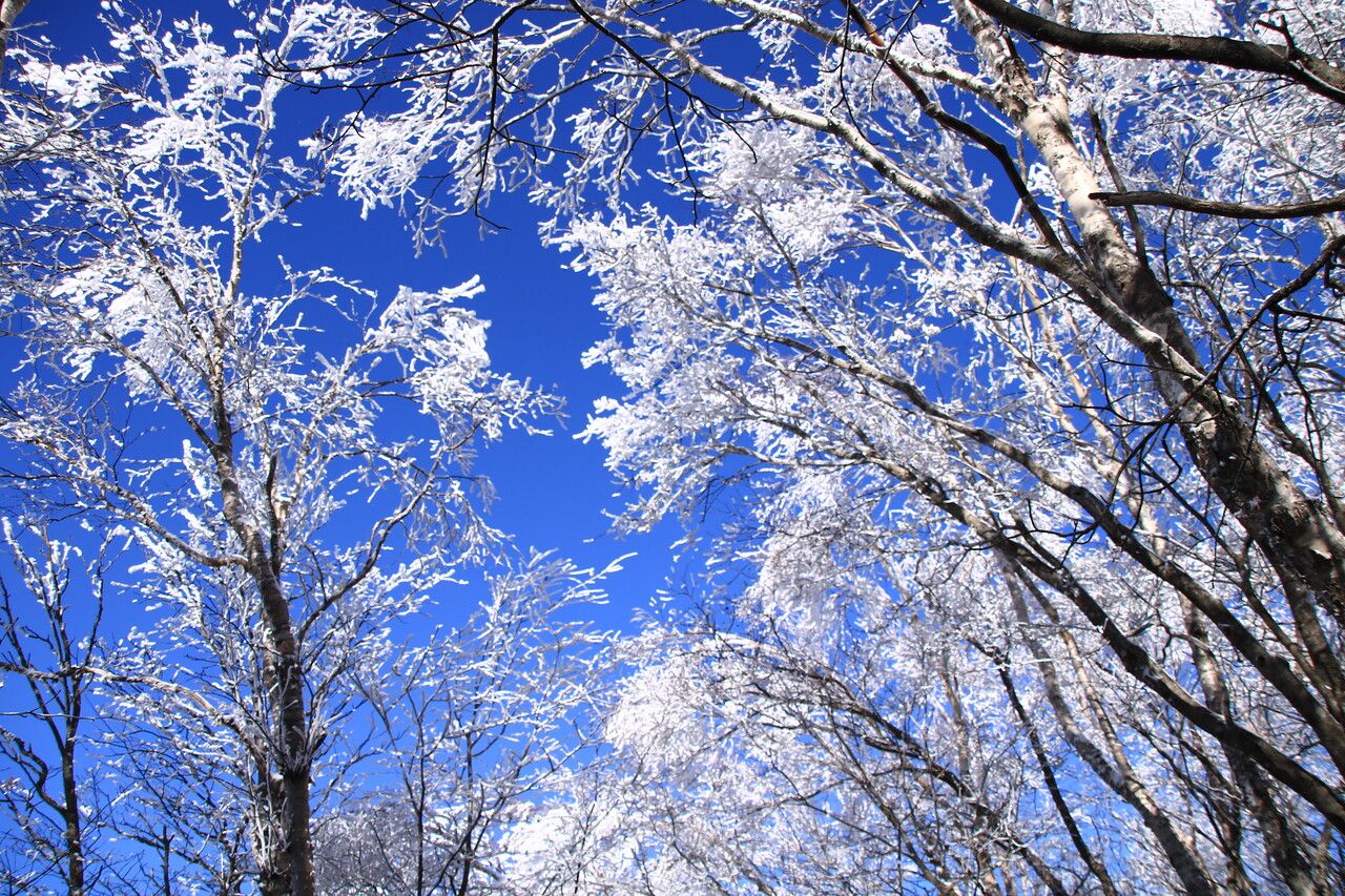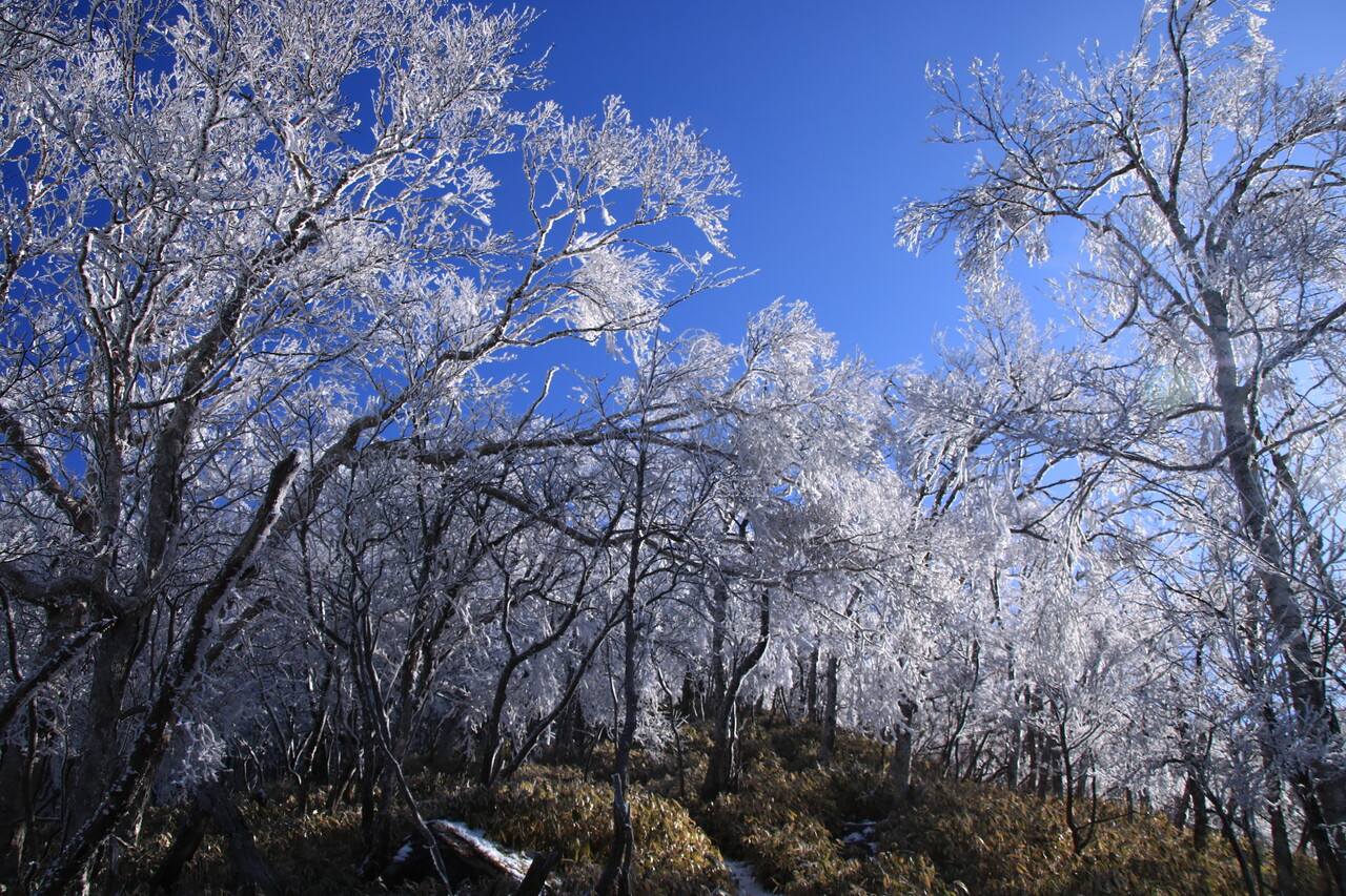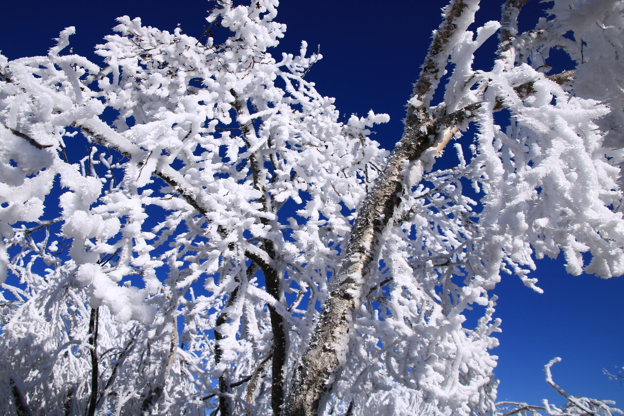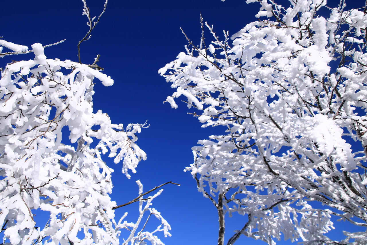 やはり白い霧氷は青い空との相性が抜群だね。
