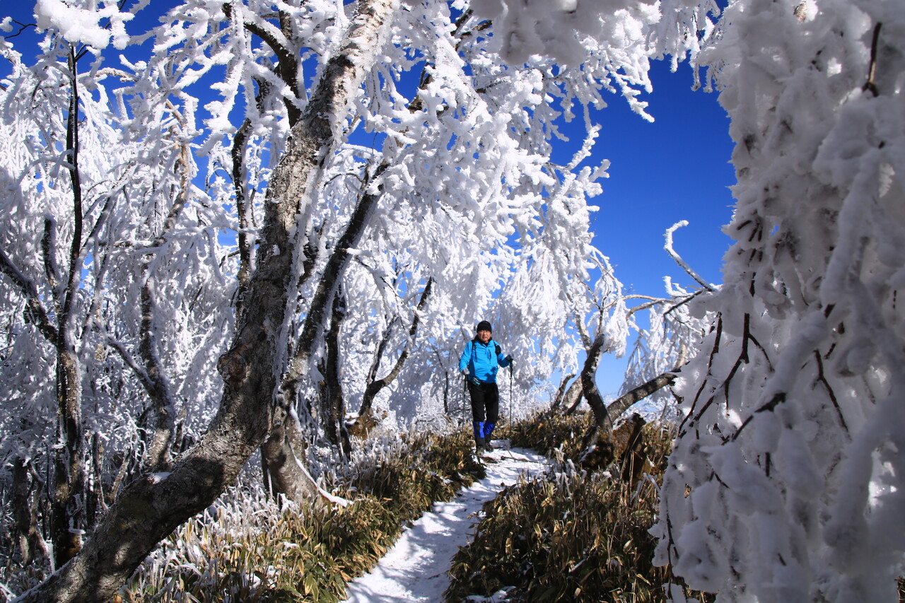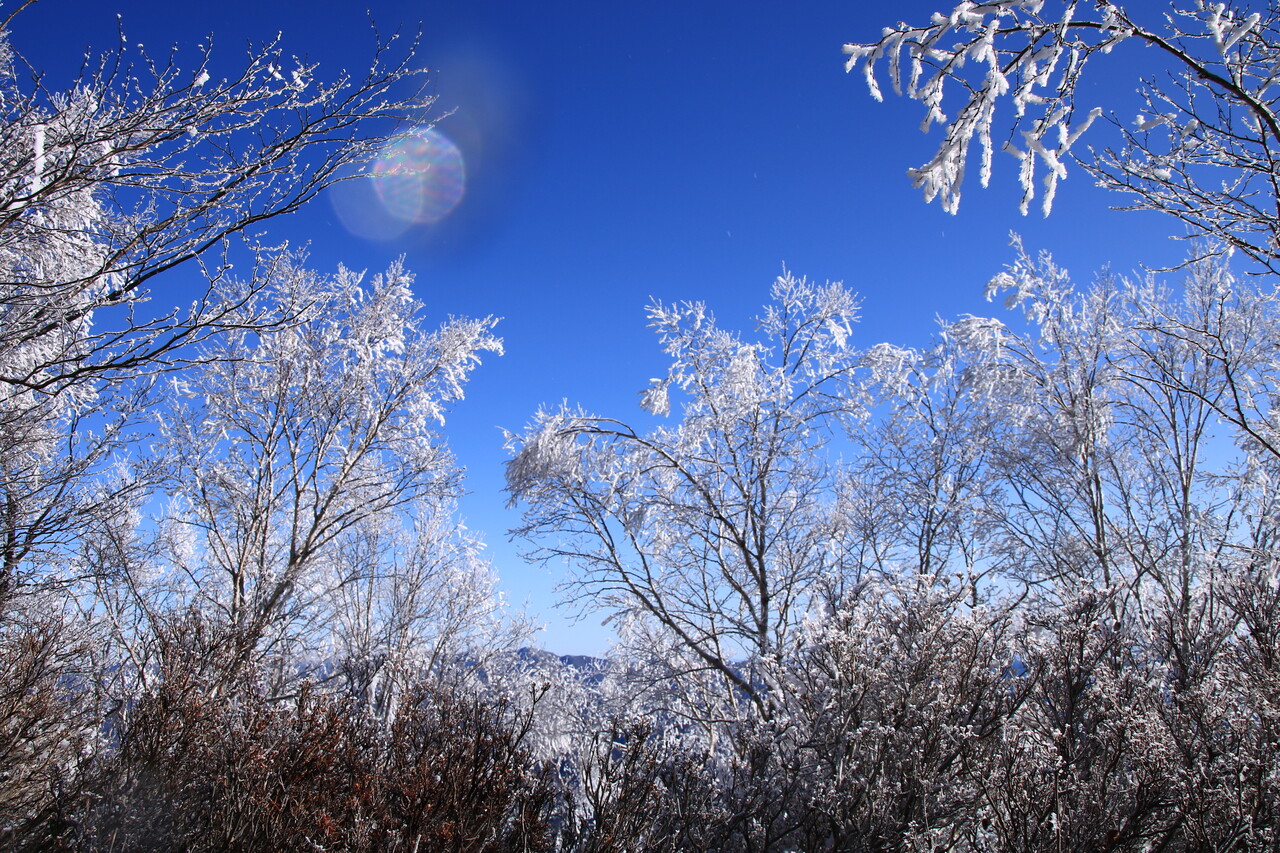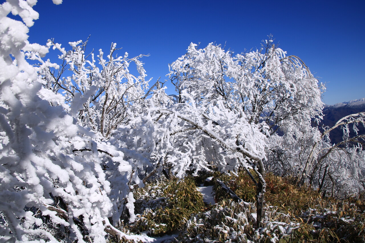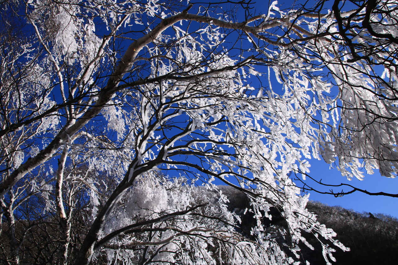 やはり白い霧氷は青い空との相性が抜群だね。