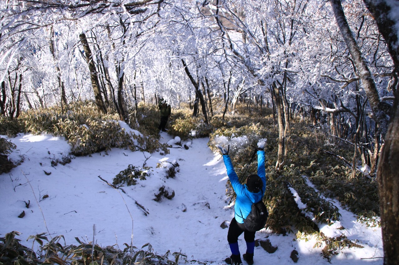 この辺りからワクワクの霧氷ゾーンが始まる。
