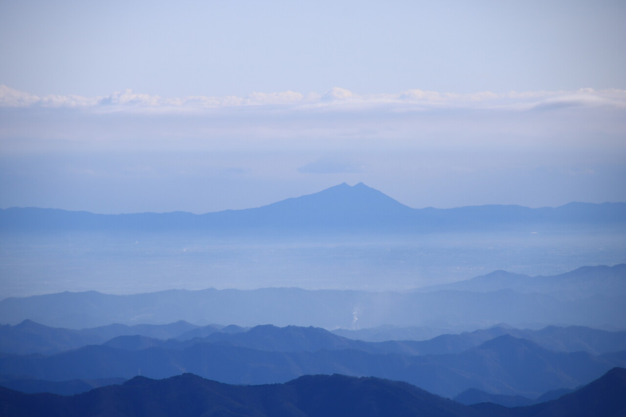 その右側に皇海山~男体山などの日光連山。