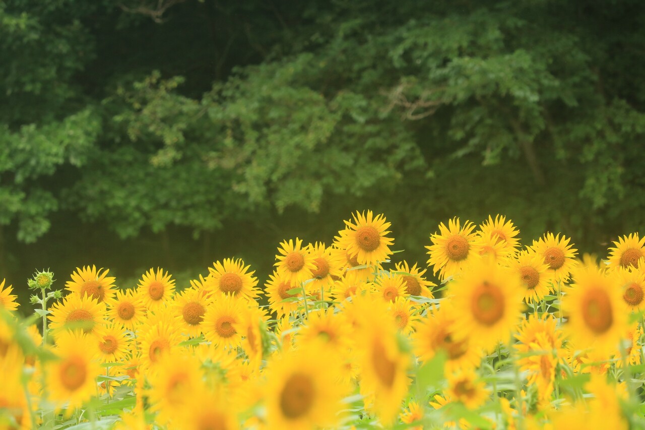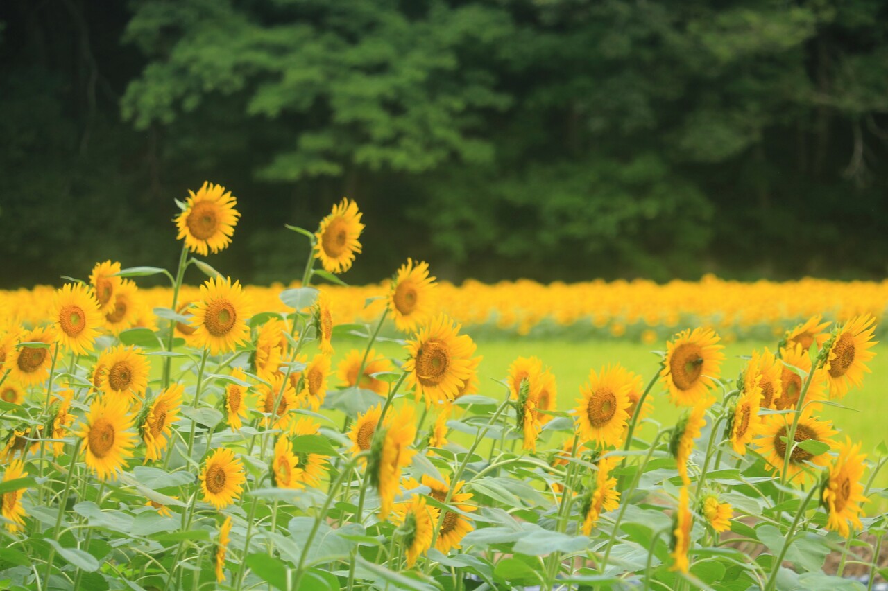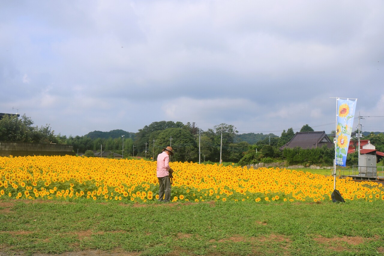 汗だくになりながらも、向日葵の黄色い花に包まれた夏のひと時を満喫。