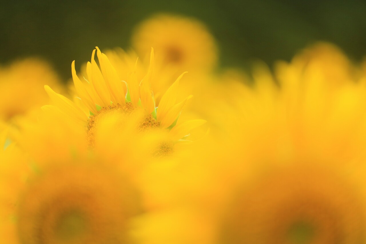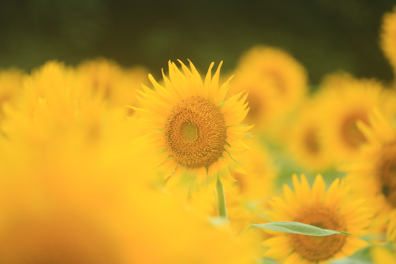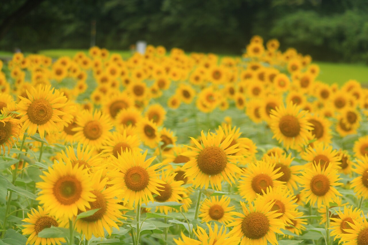 汗だくになりながらも、向日葵の黄色い花に包まれた夏のひと時を満喫。