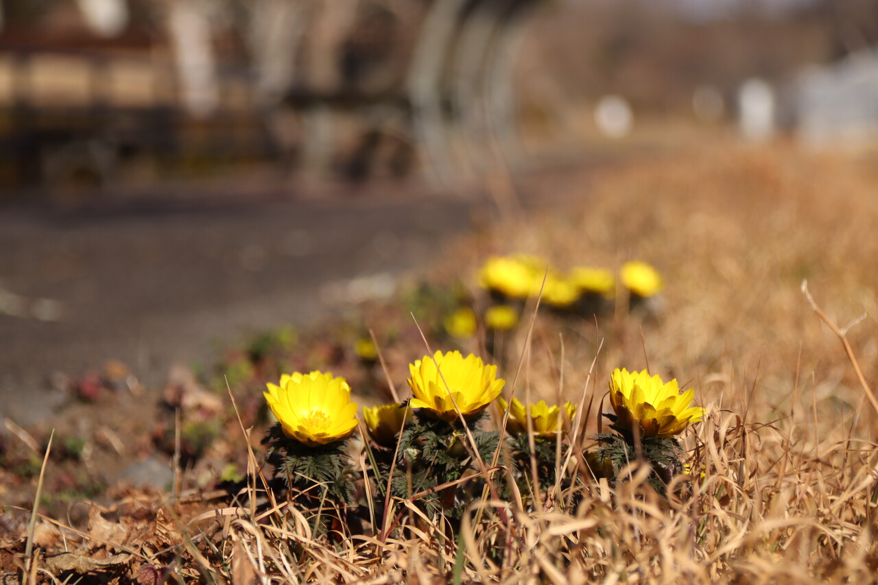 収穫は入り口の土手に咲いているフクジュソウのみ。