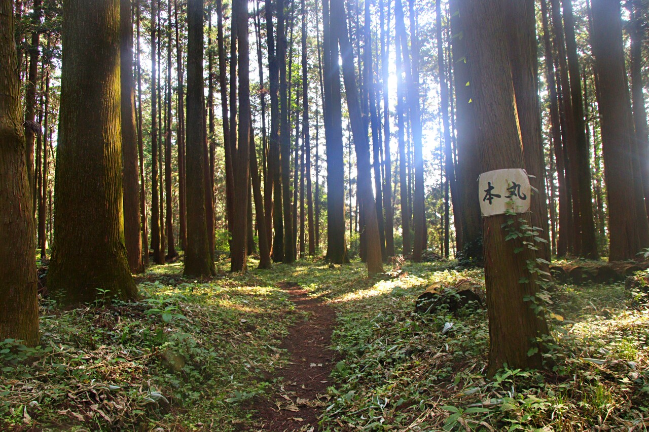 山あげ祭臨時駐車場よりスタート。 まずは毘沙門山域遊歩道を行く。